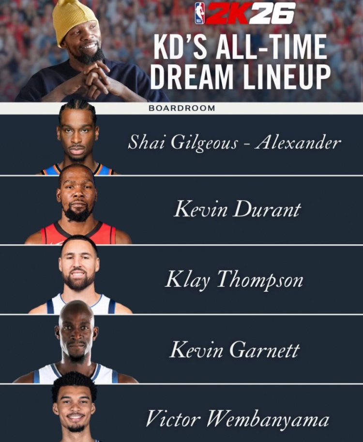 Durant selects 2K starting five: Alexander/Self/Klay/Garnett/Vinbanyama