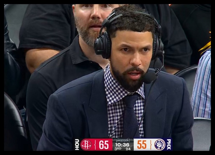 New identity! Rivers Jr. commentates the Suns-Rockets game from the sidelines