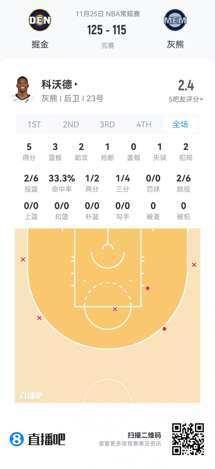 Cedric Coward, the 11th pick of the first round of the Grizzlies Played for 26.7 minutes