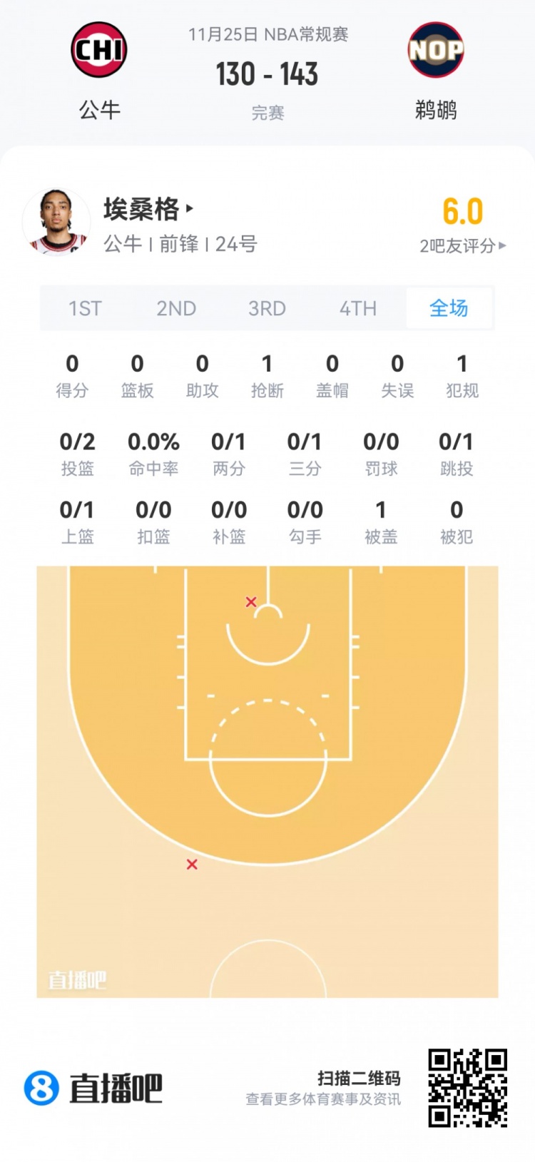 Noah Essanger, the 12th pick of the first round of the Bulls. Played for 2.2 minutes.