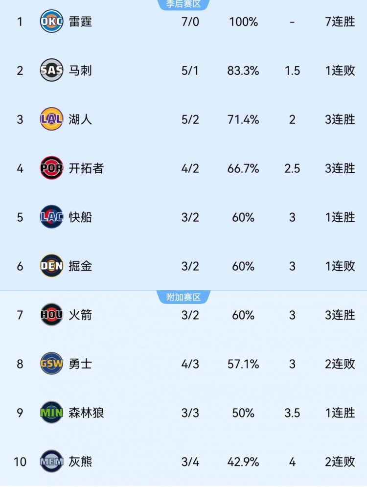 Second only to the Thunder& Spurs! The Lakers record reached 5 wins and 2 losses, ranking third in the Western Conference