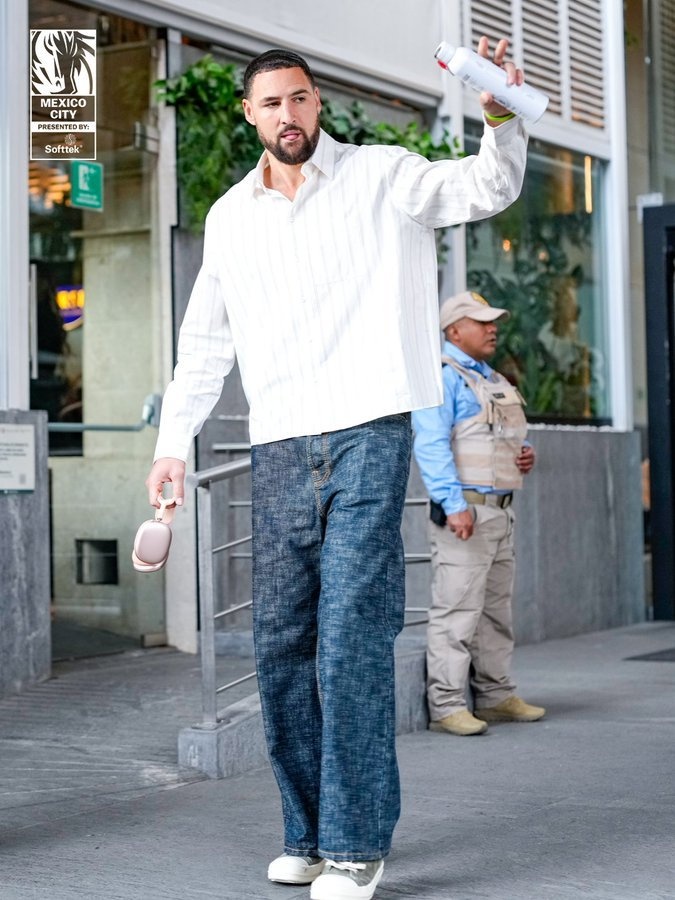 Who stands out the most? The Mavericks face the Pistons in the Mexico game. The fashionable outfits of the players before the game are captured in the mirror.