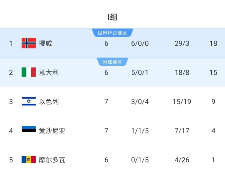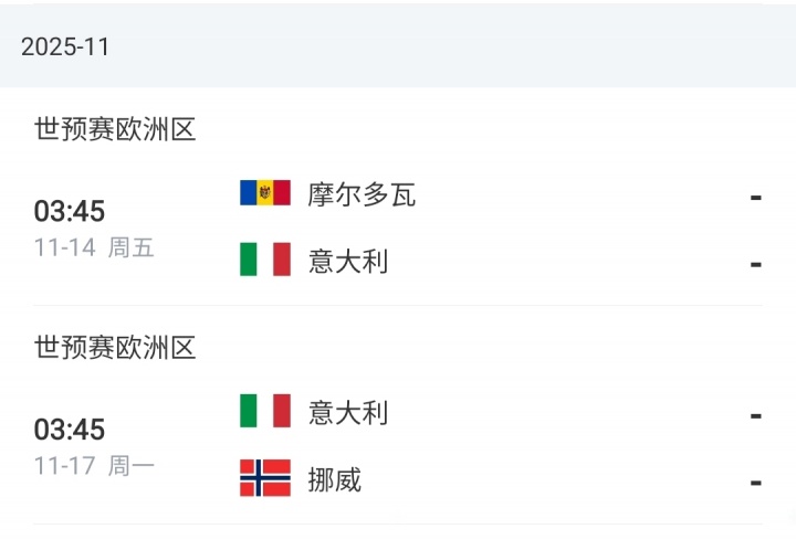 Italy announced the November World Cup preliminaries. Italy will directly play against Norway this month. The team is currently 3 points behind Norway and 16 goal difference.