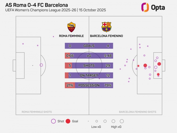 In the second round of the Women's UEFA Champions League, Barcelona Women's Football Team defeated Roma Women's Football Team 4-0 away from home.