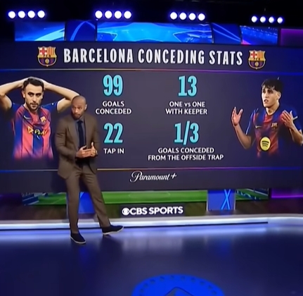 When Henry explained the Champions League game, he analyzed Flick's goal-conceding data after coaching Barcelona.