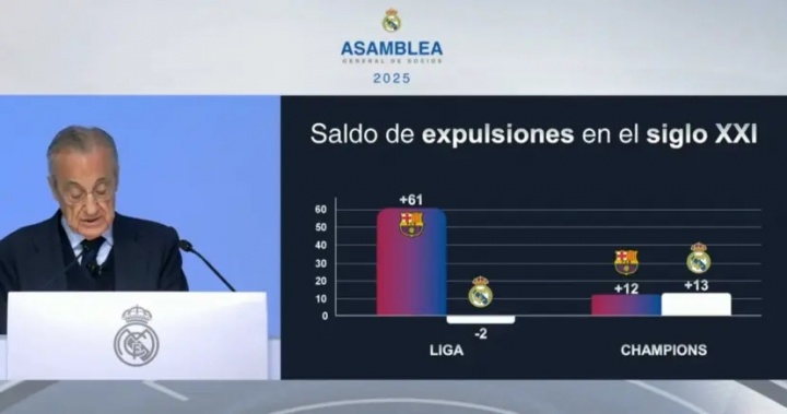 Real Madrid Chairman Florentino attended the club's membership meeting today and delivered a speech, in which he continued to blast topics related to La Liga's overseas games, referees and Barcelona.