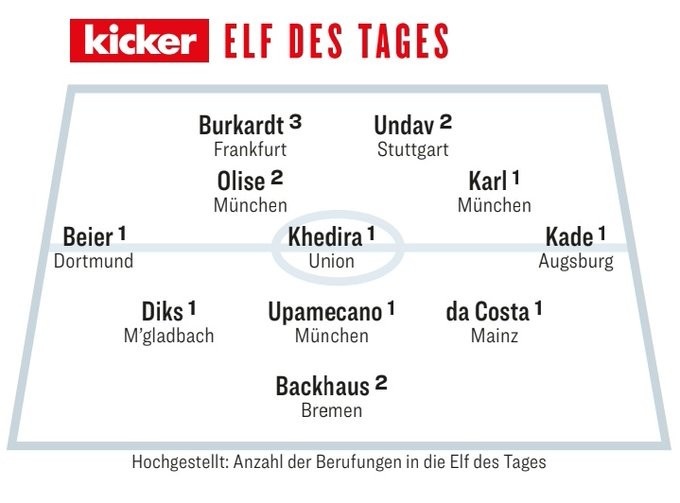 Kicker Bundesliga Team of the Week: Bayern youngster Karl is selected for the first time, Olise and Hupa are included