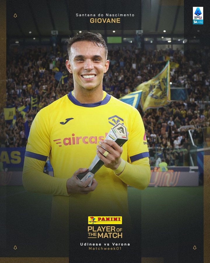 The 21-year-old Brazilian forward joined Verona this summer. He started all 11 times in Serie A this season, scoring 1 goal and 3 assists. Giovanni scored a goal in Verona's 1-2 home loss to Inter Milan earlier this month. After the game, Giovanni revealed that Inter Milan coach Chivu congratulated him on his outstanding performance.