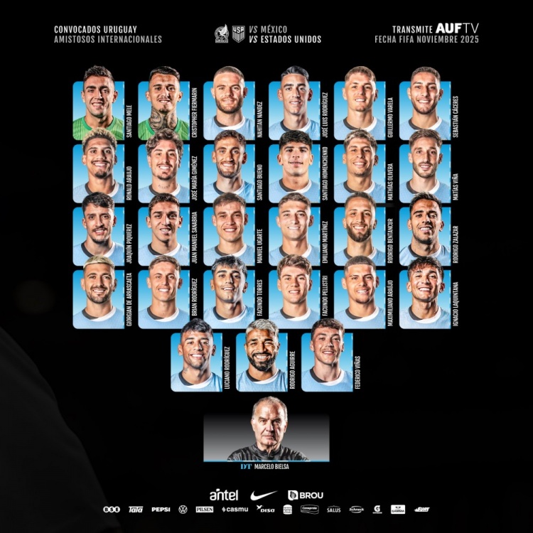 Forwards: Maximiliano Araujo (Sporting CP), Facundo Torres (Orlando City), Luciano Rodriguez (Bahia), Pellistri (Panathinaikos), Rodrigo Aguirre (Mexico America), Federico Viñas (Leon), La Quintana (Red Bull Bagantino)