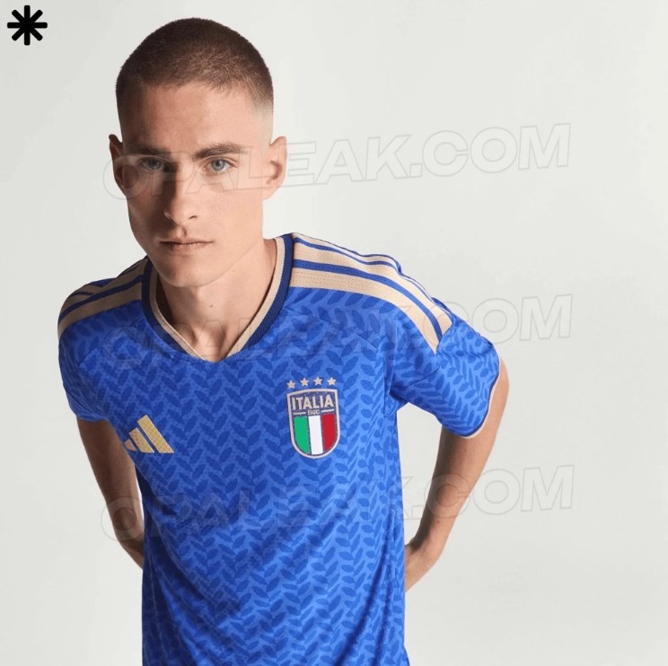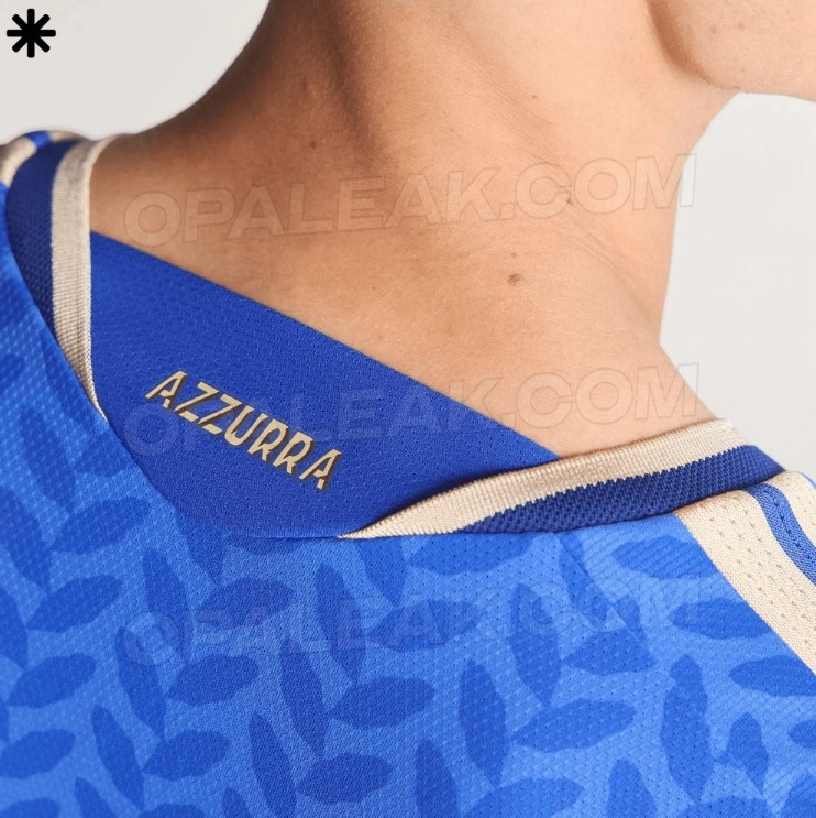 Since the Italian team won the World Cup in 2006, the golden logo has returned to the Azzurri jersey for the first time. The jersey also contains a graphic pattern similar to a young leaf, forming a striped design throughout the entire jersey.