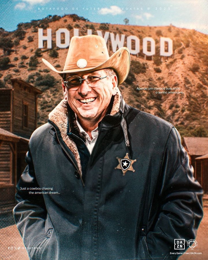 American businessman Tuctor is Bottafogo's boss. He also owns shares in clubs such as Lyon and Crystal Palace. Bottafogo official posted a poster of Tuctor standing in front of the Hollywood sign of Los Angeles, and wrote in English: "American Dream! We guess the Cowboy won...🤠🤷🏻♂️ ”