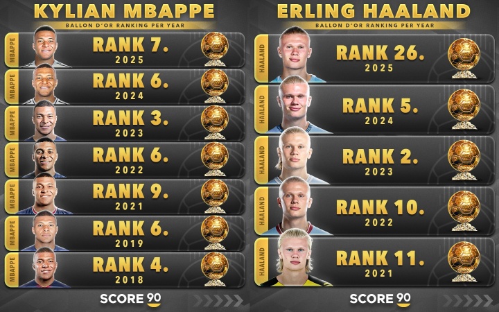 Mbappe/Haland's Golden Globe Ranking Comparison: